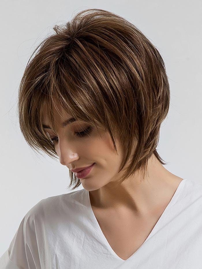 Short Side Bang Colormix Layered Straight Synthetic Wig