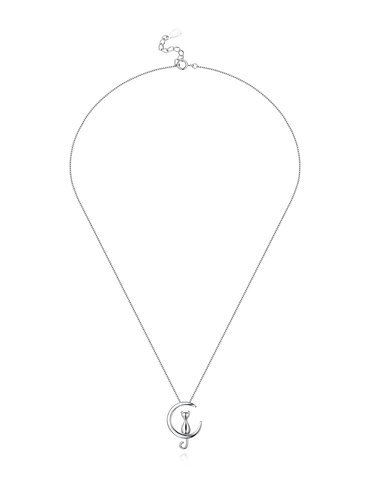 Silver Animal 925 Sterling Silver Feline’s Moonlight Necklace