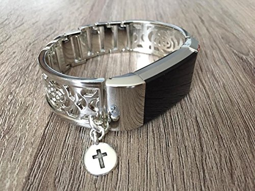 Silver Metal Band For Fitbit Charge 2 Fitness Tracker Flowers Design Accessory Jewelry Fitbit Charge 2 Bracelet With Silver Christian Cross Religious Charm Adjustable Bangle