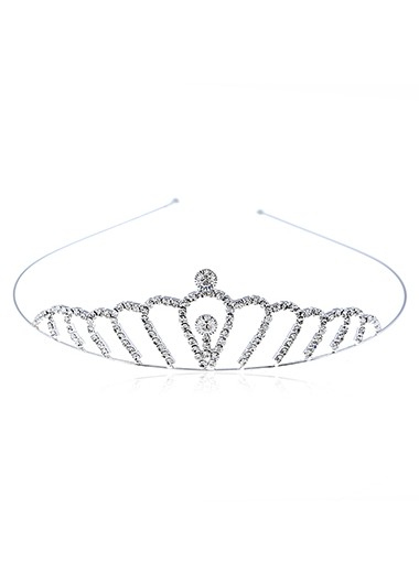 Silver Metal Rhinestone Embellished Crown Hairband for Lady FREE Shipping & 30 Days Easy Return