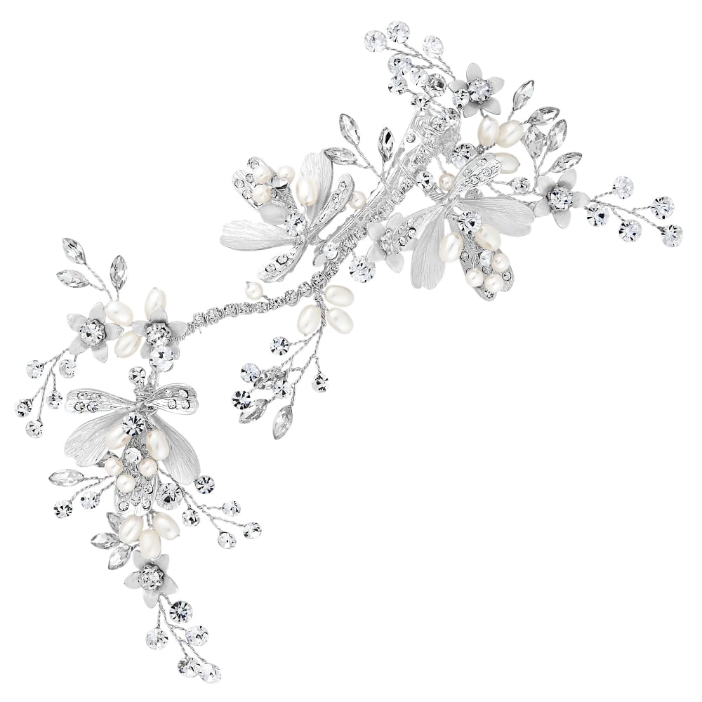 Silver Painted Leaves And Crystal Bead Dogclip