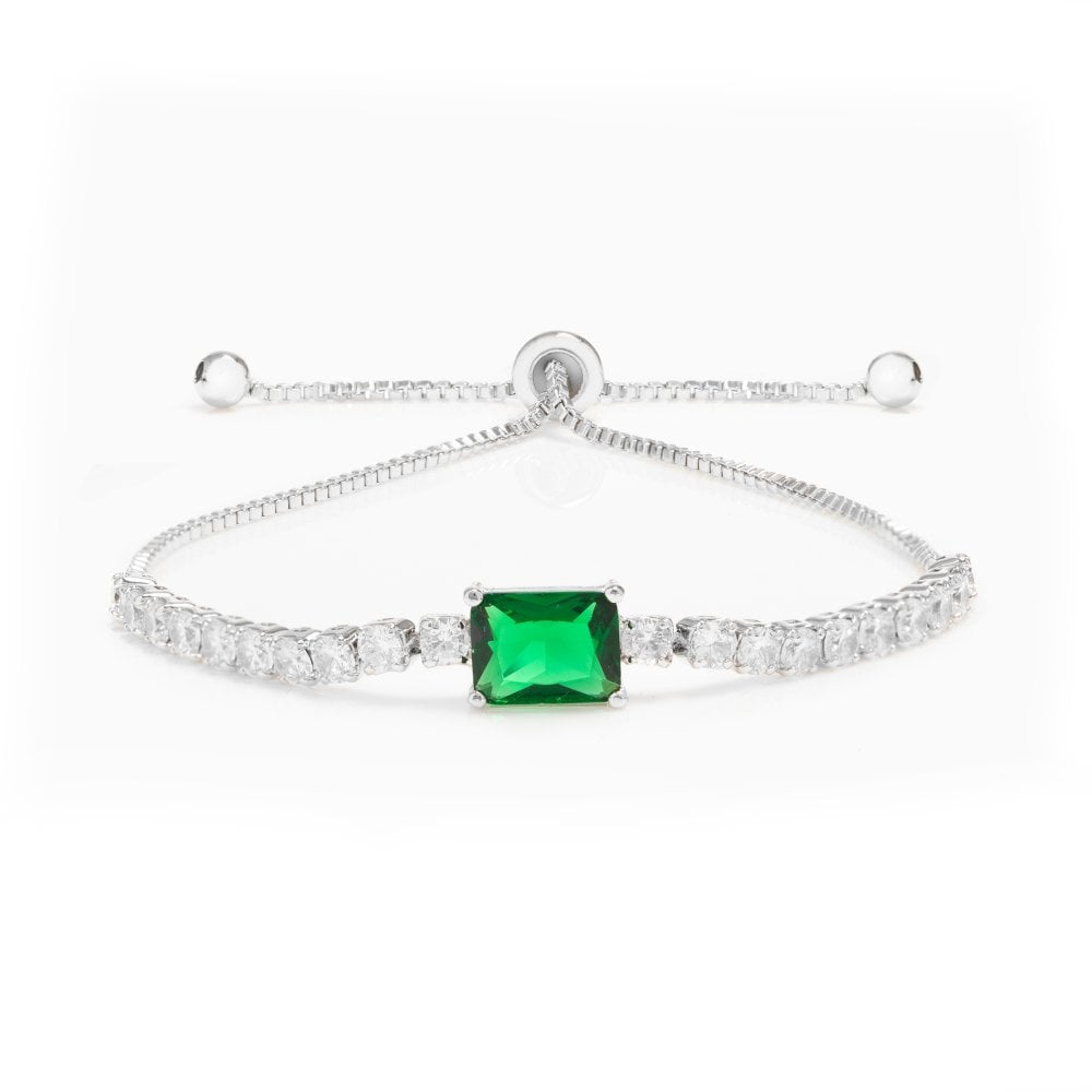 Silver Plated Emerald Green Rectangle Toggle Bracelet