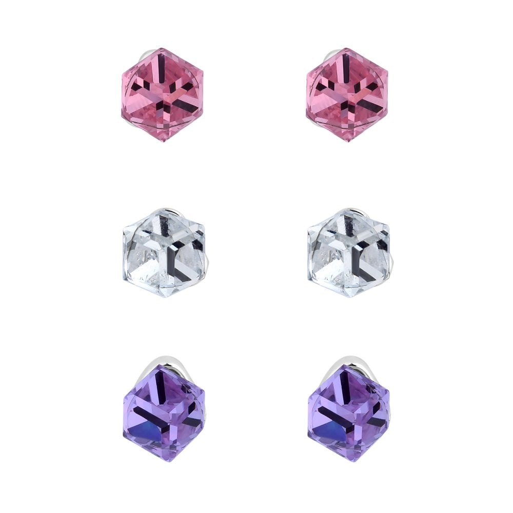 Silver Plated Multi-Coloured Cube Stud Earring Embellished With Swarovski Crystals – Pack of 3