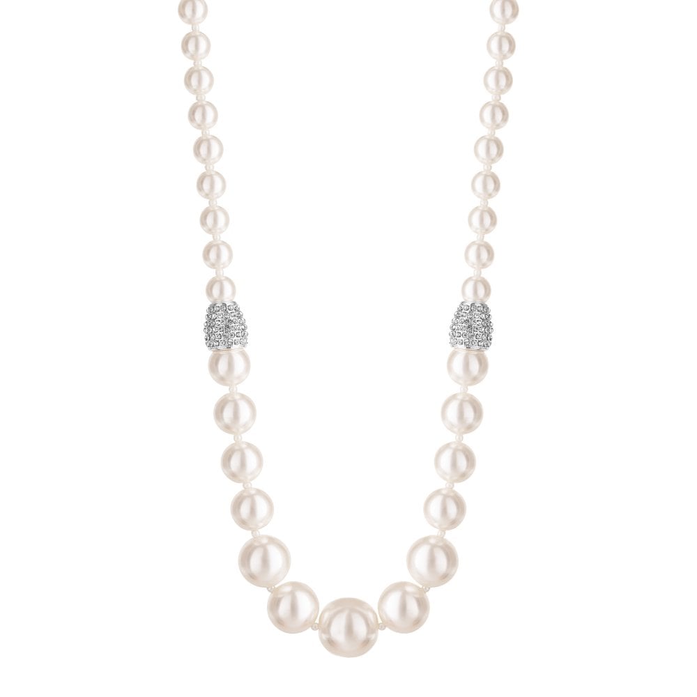 Silver Plated Pave Crystal And Cream Pearl Graduated Necklace
