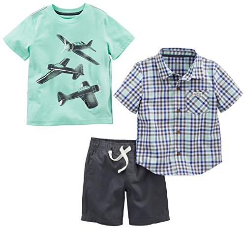 Simple Joys by Carter’s Boys’ Toddler 3-Piece Playwear Set, Mint Airplane/Plaid/Gray, 4T
