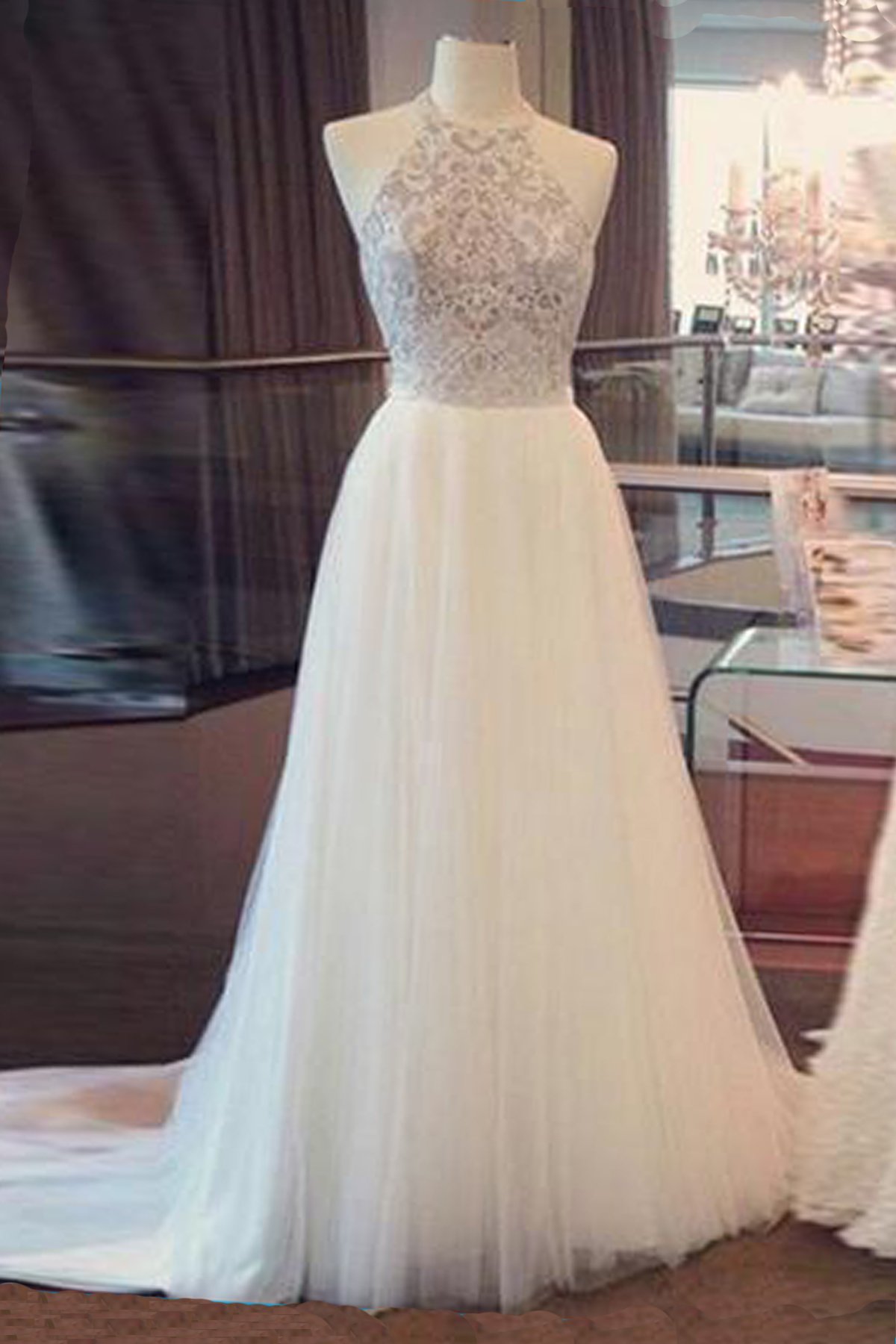 Simple White Tulle Boho Lace Wedding Dress With Sleeves