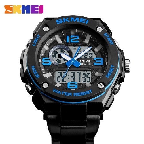SKMEI 1333 Men Quartz 3 Time Chrono Watches Countdown Analog Digital Display Wristwatch 5ATM Waterproof Fashion Casual Backlight Multifunctional Watches