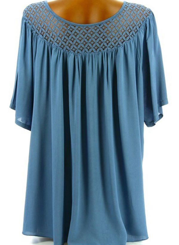 Solid Casual Round Neckline Short Blouses For Women