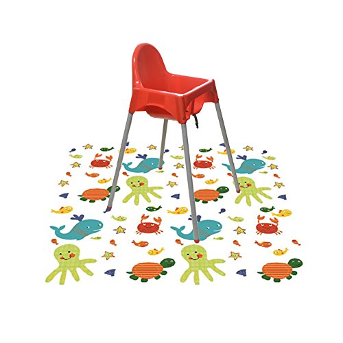 Splat Mat for Under High Chair/Arts/Crafts, Wo Baby Reusable Waterproof Anti-slip Floor Splash Mat, Portable Play Mat and Table Cover (51″, Seaworld)