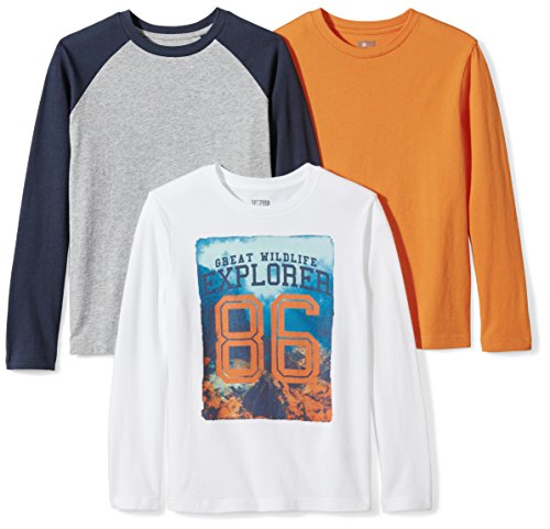 Spotted Zebra Big Boys’ 3-Pack Long Sleeve T-Shirt, Explorer, M