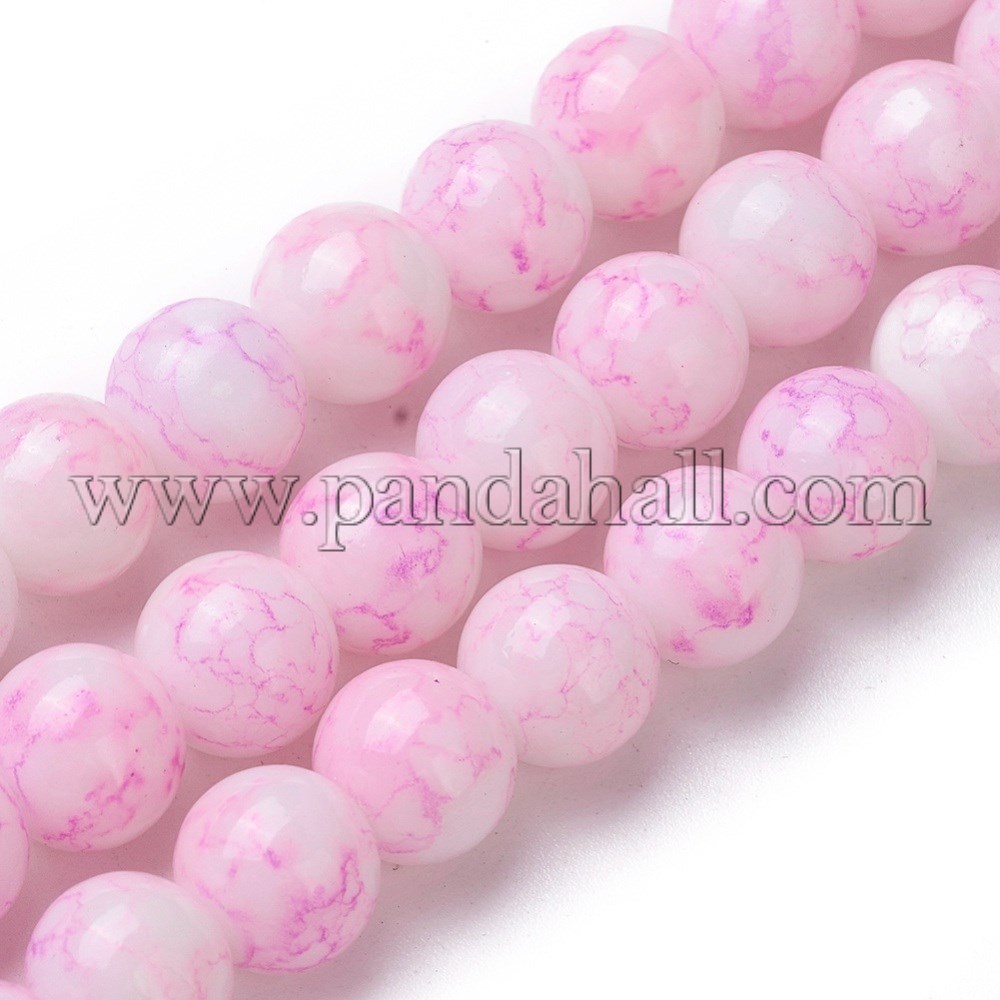 Spray Painted Glass Beads Strands, Dyed, Round, PinkSize: about 8~8.5mm in diameter, hole: 1mm; about 48pcs/strand, 14.7″(37.5cm).