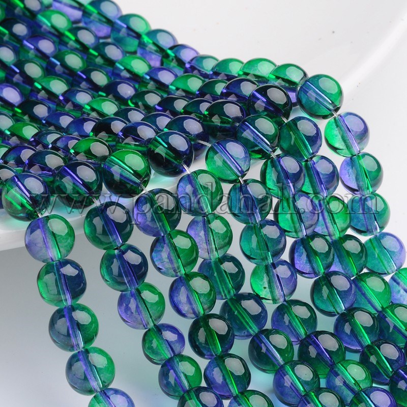 Spray Painted Transparent Glass Bead Strands, Round, DarkSeaGreen and SlateBlueSize: about 8mm in diameter, hole: 1mm; about 104pcs/strand, 31.5″.We’d seen gradual changes in color of the glass beads that make different visual effect. Painted glass beads are gaining popularity attributed to their affordable and gorgeous advantages. How about get these lovely to decorate with your favorite items. Finest material beads would build possible interesting things out.