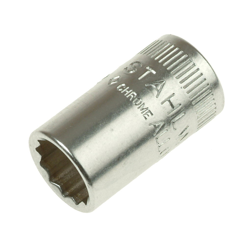 Stahlwille Series 40AD Bi-Hexagon sockets with 1/4in square drive in AF imperial sizes are made from HPQ® high performance steel, and are chrome plated. HPQ® sockets are manufactured from selected tough steel alloys for an extremeley high load capacity with exceptionally thin rings and walls. They are free of cadmium and are therefore suitable for use on titanium alloy parts and titanium fasteners, such as those used in the aerospace industry, where safety is a crucial factor. The Sockets are equipped with AS drives to permit high transmission of forces to the lands of the nuts and bolts without damaging them. Manufactured to ASME B 107.1, Fed. Spec. GGG-W-641, SAE AS 954-E (test loads). MADE IN GERMANY.Size 1/2 AFOverall length 23mm