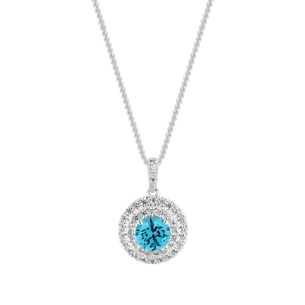 Sterling Silver 925 Cubic Zirconia Double Halo Aqua Necklace