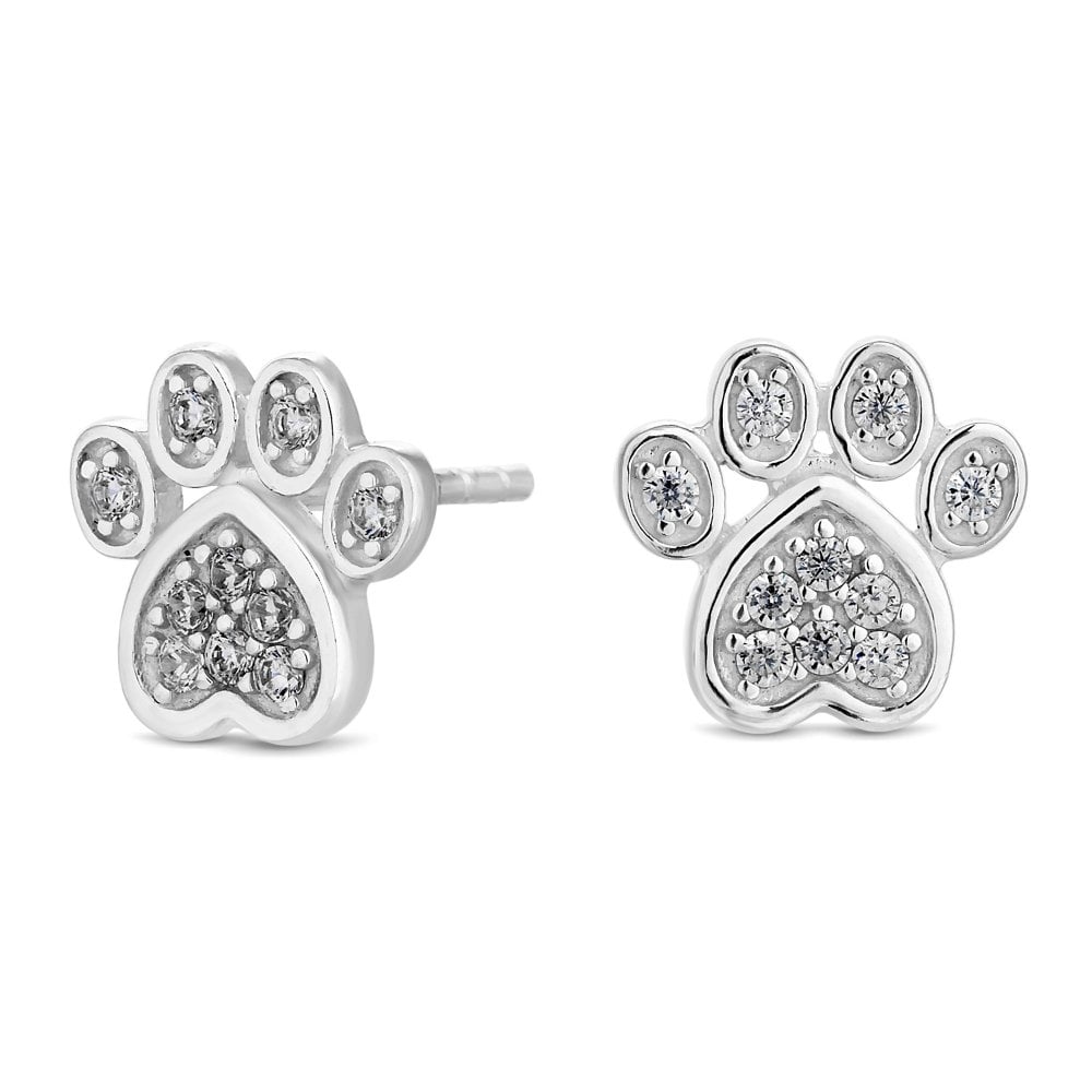 Sterling Silver 925 Cubic Zirconia Paw Print Stud Earring
