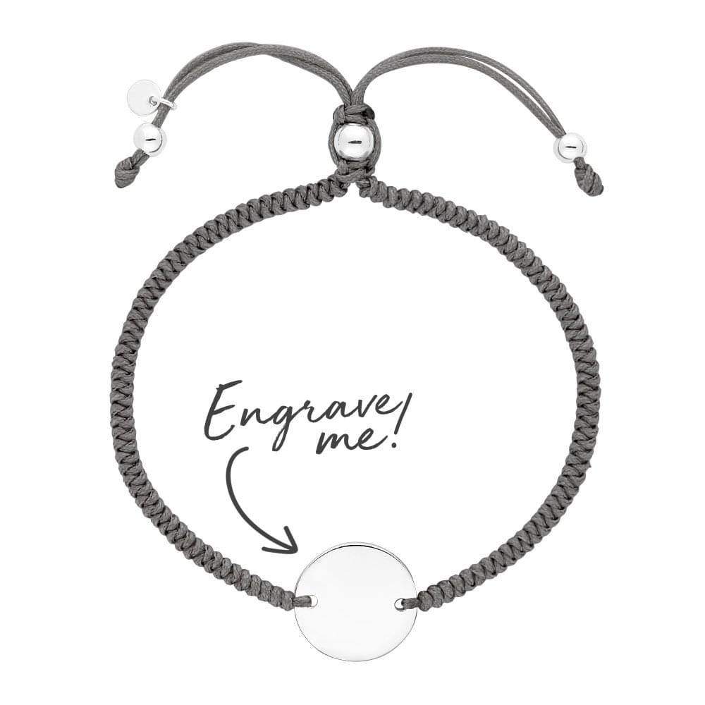 Sterling Silver 925 Disc On A Grey Cord Toggle Bracelet – Personalise By Engraving