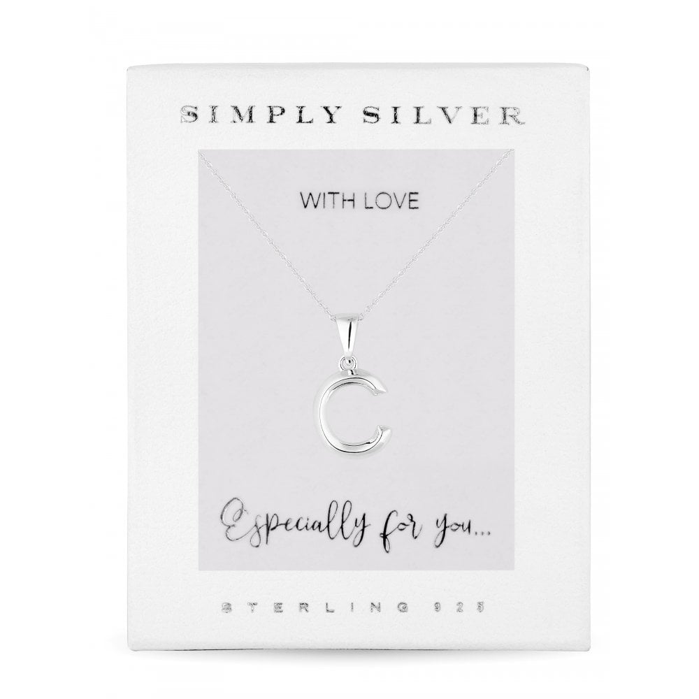 Sterling Silver 925 Polished Alphabet Necklace – Letter C