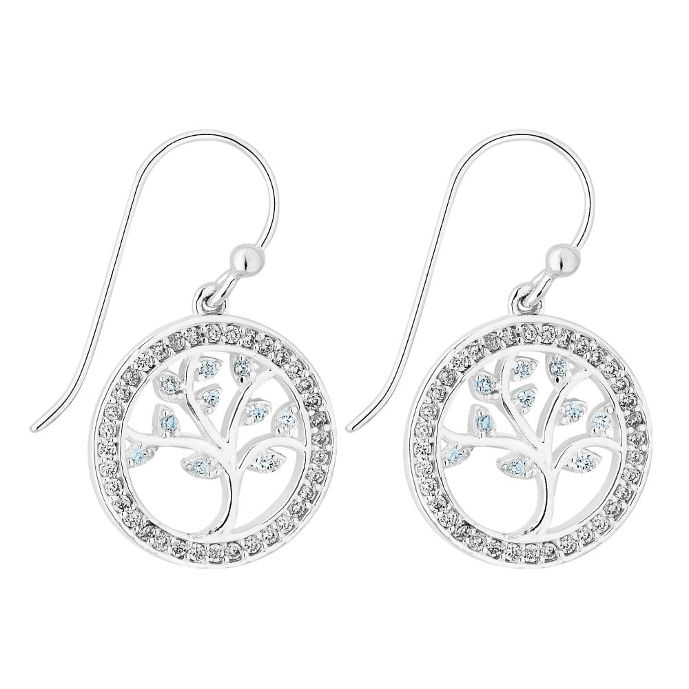 Sterling Silver 925 Tree Of Life Blue Drop Earrings Embellished With Swarovski Crystals