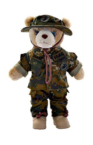 Stuffed 10″ female teddy bear in personalized custom embroidered U.S. Marine Corps Woodland MarPat Utility Military Uniform-DigiCams