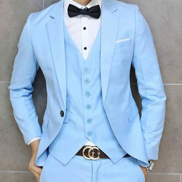 Summer Men Suits for Wedding Blue Suits with Pants Groom Tuxedos Man Prom Jacket Party 3Piece Costume Homme Mariage Formal Terno Masculino
