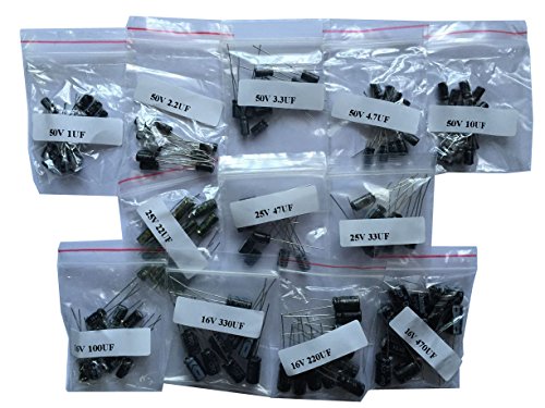 sunkee 12 Value (1uf-470UF) 120 pcs Electrolytic Capacitors kit,50V1UF ,50V2.2UF, 50V3.3UF, 50V4.7UF, 50V10UF, 25V22UF, 25V33UF ,25V47UF, 16V100UF ,16V220UF, 16V330UF ,16V470U,Feach 10 pcs