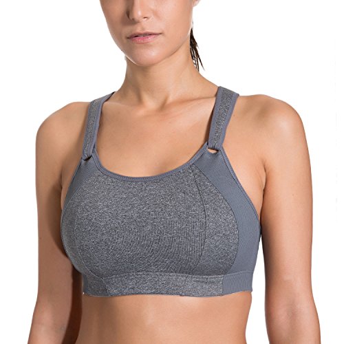 SYROKAN Women’s Front Adjustable Lightly Padded Racerback High Impact Sports Bra Grey 38D