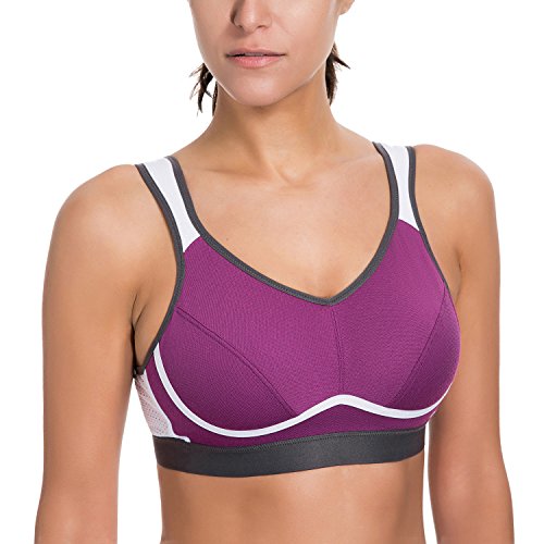 SYROKAN Women’s High Impact Support Bounce Control Plus Size Workout Sports Bra Purple 38D