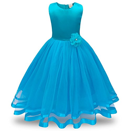 TAORE Girl Dress Kids Pageant Tutu Dress Ruffles Lace Party Wedding Dresses (6T, Light Blue)