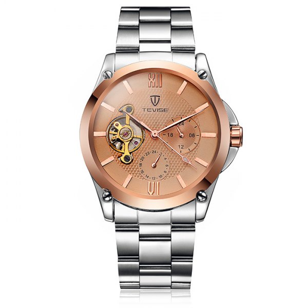 Tevise 8502 Men Tourbillon Automatic Mechanical Watch with Two Working Sub dials Alloy Strap