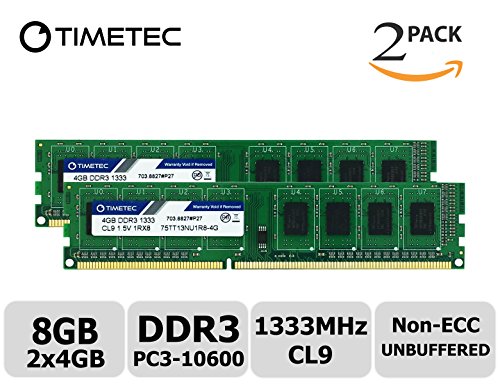 Timetec Hynix IC 8GB Kit (2x4GB) DDR3 1333MHz PC3-10600 Unbuffered Non-ECC 1.5V CL9 1Rx8 Single Rank 240 Pin UDIMM Desktop Memory Ram Module Upgrade (High Density 8GB Kit (2x4GB))