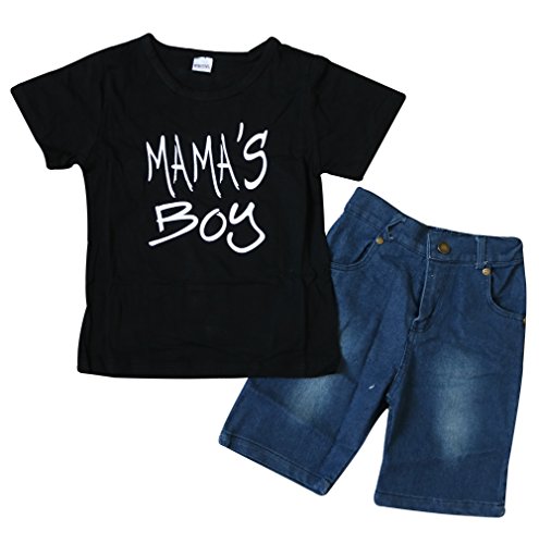 Toddler Baby Boy Clothes Short Sleeve T-Shirt +Denim Pants Outfits Set Size 4T (Black-1)
