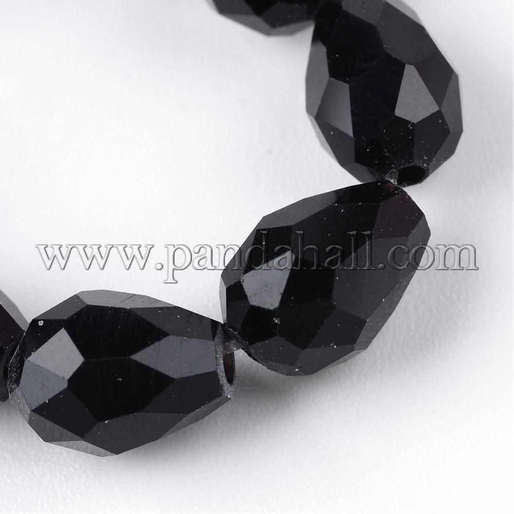 Transparent Glass Bead Strands, Faceted Drop, Black, 8x6mm, Hole: 1mm; about 72pcs/strand, 22″