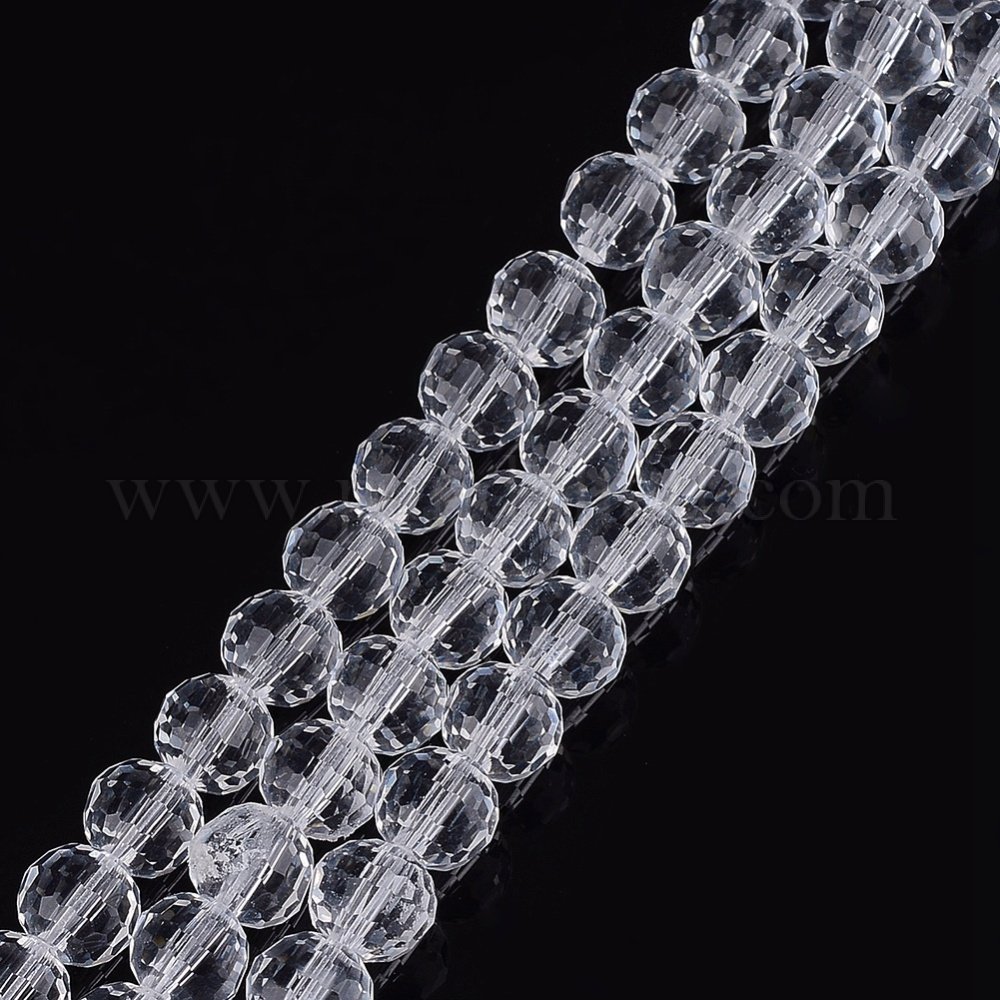 Transparent Glass Bead Strands, Faceted, Round, ClearSize: about 6mm in diameter, hole: 1mm; about 72pcs/strand, 15″.Glass beads are shining and fascinating. Its decent appearance is full of beauty of pure and simple. Glass beads always give people a feeling of elegant and exquisite. It can be matched with hooks, jump rings, and pins to be necklaces, bracelets and so on.