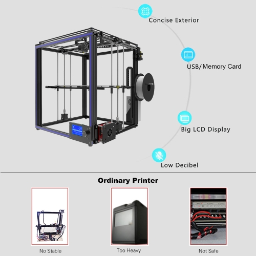 Full Metal Frame: Box type frame with 90 right angle fixed. 330 * 330 * 400mm large printing size.