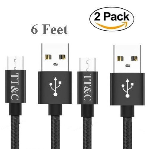 TT&C Micro USB Cable, 2Pack 6 Feet Long Super Durable Nylon Braided Android Charging Cord for Samsung, Kindle, HTC, Nexus, LG, Sony, Xbox, PS4, Smartphones – Black (6 Feet)