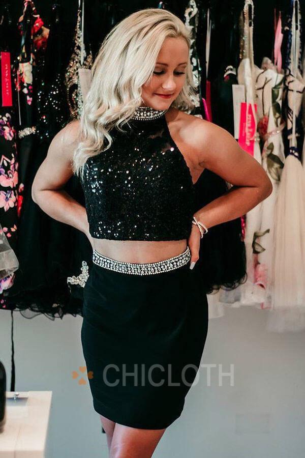 Buy Two Piece Sheath Jewel Black Satin Homecoming Dress with Beading,Cheap Casual Dresses,Cheap Dresses Online Free Shipping.