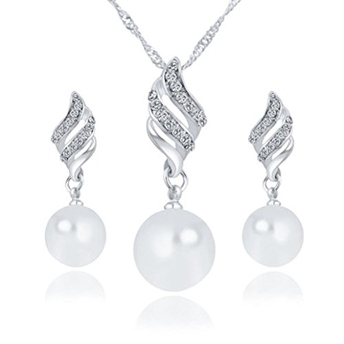 Valentine’s Day Women Necklace,Jushye Girls Luxury Princess Bridal Jewellery Set Spiral Shaped Pearl Stud Earrings & Necklace Sets (Silver)