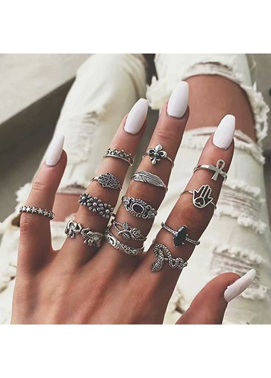 Various Shape Silver Metal Ring Set for Woman FREE Shipping & 30 Days Easy Return