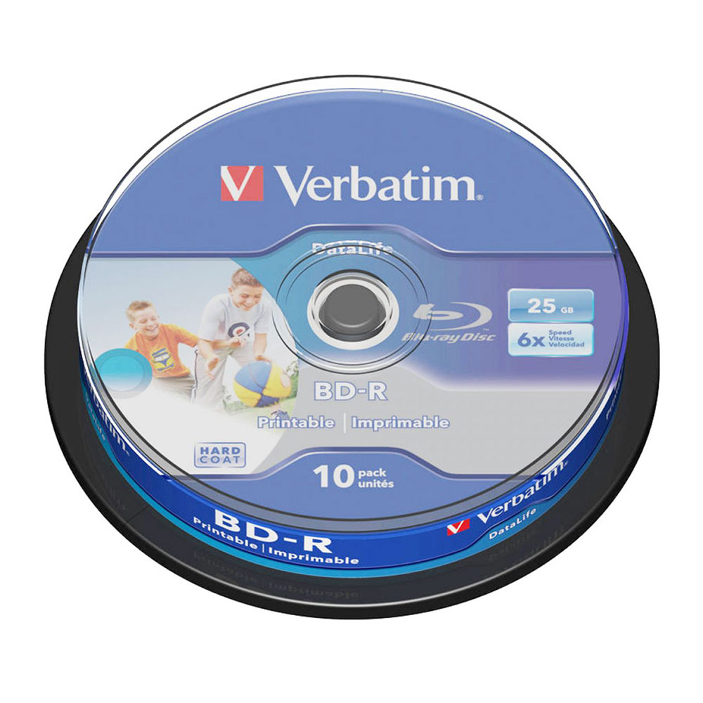 Verbatim 43804 BD-R SL Datalife 25GB 6x Wide Inkjet Printable Blu-ray Disc – Spindle Pack of 10