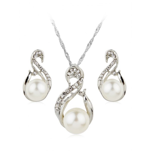 Be the first to review “Vintage Rhinestone Inlaid Faux Pearl Wedding Jewelry Suit”