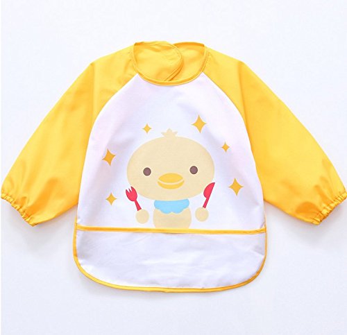 Random color delivery of green and yellow.Baby Bib With Sleeves. Random delivery of green and yellow.