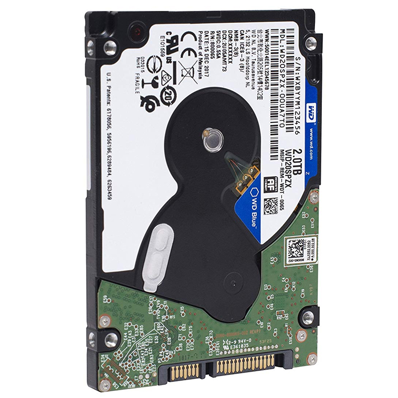 Trusted engineering Built to WDâs highest standards of quality and reliability, WD Blue offers the features and entry-level capacities that are ideal for your computing needs. WD Blue is designed by the brand that you trust with the quality you would expect for a tested, proven, everyday storage solution. A modern classic WD Blue storage is designed and manufactured with technology found in WDâs original award-winning desktop and mobile hard drives. WD Blue sets the baseline for everyday storage by consistently delivering improved performance over previous generations while successfully maintaining WDâs quality and reliability for over six generations. The difference is that our colors never fade, generation after generation. Your power of choice WD Blue is available in a broad range of entry-level capacities, cache sizes, form factors and interfaces so you can be sure thereâs a drive thatâs the perfect fit for your system. However, not all hard drives are created equally and for your applications that demand more, WD gives you the power of choice. Â Drive with confidence We perform tests on hundreds of systems, configurations, and a multitude of platforms in our FIT Lab to give our customers the confidence that our drives will work in their systems for the ultimate compatibility. WD Blue allows you to use our drive with confidence, knowing that our storage advancements such as NoTouch Ramp Load technology are proven and reliable everyday solutions. Easy upgrade Acronis True Image, available as a download on the WD Support website, enables you to copy all your data to a new drive so you don’t have to reinstall your operating system to get all the benefits of a new drive. The WD advantageWD puts our products through extensive Functional Integrity Testing (F.I.T.) prior to any product launch. This testing ensures our products consistently meet the highest quality and reliability standards of the WD brand. WD also has a detailed Knowledge Base with more than 1,000 helpful articles as well as helpful software and utilities. Our customer support lines have longer operational hours to ensure you get the help you need when you need it. Our toll-free customer support lines are here to help or you can access our WD Support site for additional details. Recommended use WD Blue storage is tested and recommended for use in notebooks, external enclosures and certain industrial applications. Key Features – SATA 6 Gb/s interface – Storage built to WD’s high standards of quality and reliability – Manufactured with WD’s award-winning desktop and mobile hard drive technology – Available in a broad range of capacities and form factors – Tested in our F.I.T. Lab for ultimate compatibility Specifications Capacity: 2 TB Buffer Size: 128 MB Rotational Speed: 5,400 RPM (nominal) Metric Weight: 0.09 kg Metric Width: 69.85 mm Metric Height: 7.0 mm Metric Depth: 100.2 mm Box Contents 1 x WD Mobile Blue (7MM) WD20SPZX 2.5″ SATA 6Gb/s 2TB 5400rpm