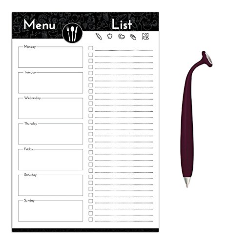 Attach this handy magnetic Weekly Meal Planner with Pen to your refrigerator, filing cabinet, locker, dishwasher or any other metal surface and always have a convenient location to write down your weekly meal plan and grocery list. Pad is perforated in middle allowing for shopping list to be easily removed to take to the store with you.Weekly meal planner with space for each day of week.