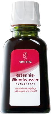 Refreshes mouth and breath Refreshes mouth and breath. Rinse away bad breath with the power of this refreshing mouthwash. It’s an invigorating mouthful of pure organic and natural plant extracts that soothe and tone your gums while freshening your breath. Weleda Ratanhia Mouthwash is a unique concentrate made of plant extracts of ratanhia and myrrh, which are known for their toning, astringent and soothing properties. Pure essential oils of sage, eucalyptus and peppermint provide freshness. Daily use reduces bad breath and helps tighten the gums. How to use: Pour 5 to 10 drops of concentrate into half a glass of lukewarm water. Rinse the mouth well and/or use to gargle. Highly concentrated-when diluted one bottle makes more than five litres/1.32 gallons of mouthwash. Contains Calcium fluoride. Ingredients (INCI): Alcohol, Water (Aqua), Commiphora Myrrah Extract, Krameria Triandra Root Extract, Flavor, (Aroma)1, Aesculus Hippocastanum Bark Extract, Calcium Fluoride (in highly diluted form), Magnesium Sulfate (in highly diluted form), Lactose, Limonene1, Linalool1, Eugenol1 1 from natural essential oils