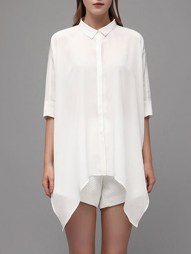 White Polyester Asymmetric H-line Casual Tunic