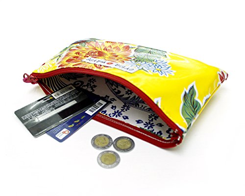 Medium Oilcloth Wallet is the perfect accessory for any of your activities. It can be used as a receipt wallet, a bill wallet, a pencil case, cosmetic case, credit card wallet and anything you can imagine. Measurements: 9″ x 6″ Features a nylon zipper, a leather pull tab and its lined in oilcloth. STYLE Crisantemo Yellow