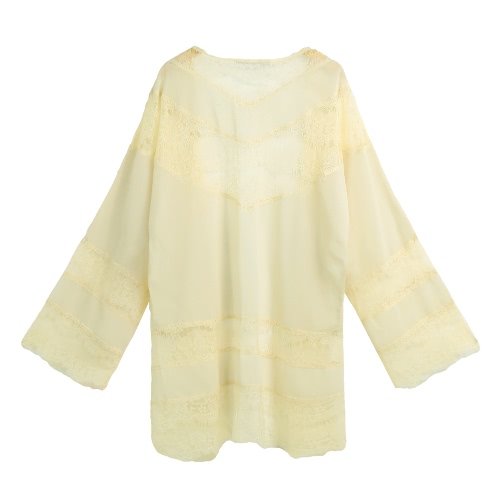 Women Chiffon Kimono Cardigan Floral Lace Boho Loose Outerwear Beachwear Cover Up Blouse Tops Black/Beige/White