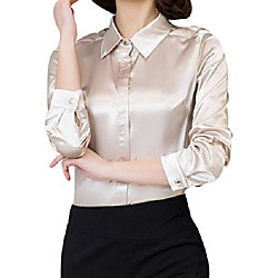 Women Silk Feel Long Sleeve T Shirt Button Down Satin Blouse Champagne M Lightinthebox