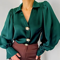 Women’s Blouse Shirt Plain Button Shirt Collar Casual Tops Green Black Wine Lightinthebox