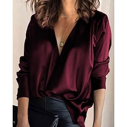 Women’s Blouse Shirt Plain V Neck Basic Casual Tops Green Blue Black Lightinthebox